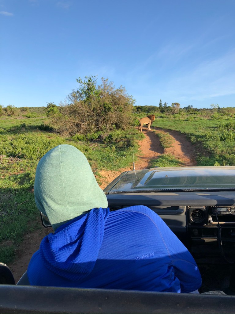 Unbelieveable, I caught him marking his territory!! You could wait a long time to get this shot. Maybe, National Geographic Photographer is in my future!! Honest you could wait months for this shot! I was giddy! He wasn’t “marking” because of us. They can hear other lions from long distances and have no idea they aren’t in their Reserve.
