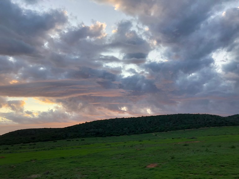 They call it “the bush”. It seemed more plains and mountains to me. We traveled up and down. Even on the upper parts there were flat areas were animals grazed. Don’t count out the bushy scrubby area though, lots of animals hide, eat and sleep in there. All eyes open all the time … you never know where you’ll spot them.