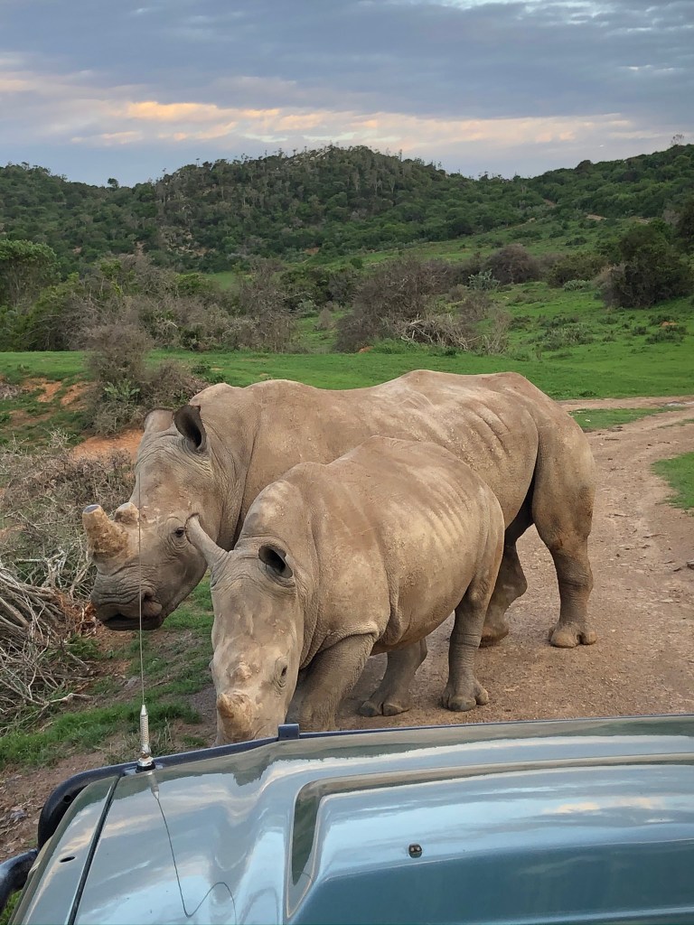 The Rhino’s were big, brawny and intimidating. Whenever our guide stopped the Jeep, we were instructed to stay seated, do not make a lot of movement, no reaching out to touch them and be as quiet as possible. She talked in whispers. Most of the time we were silent and observed their natural behavior. The closer they got the quieter we got …. Mesmerizing!