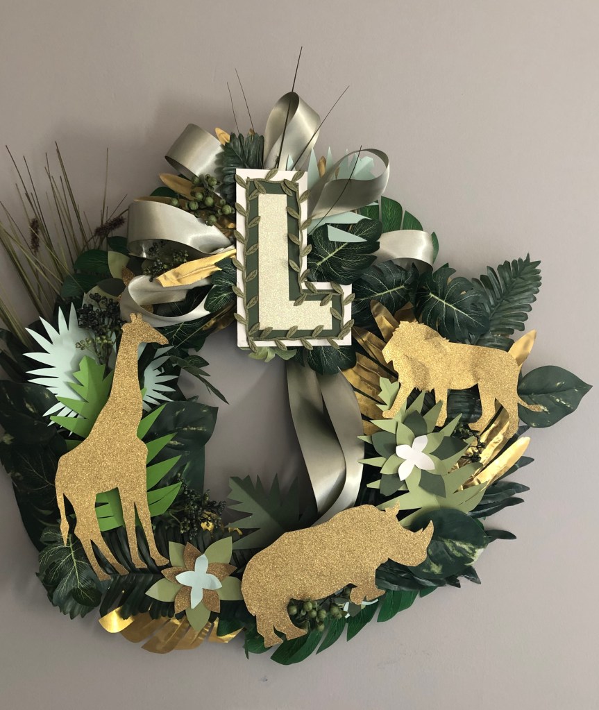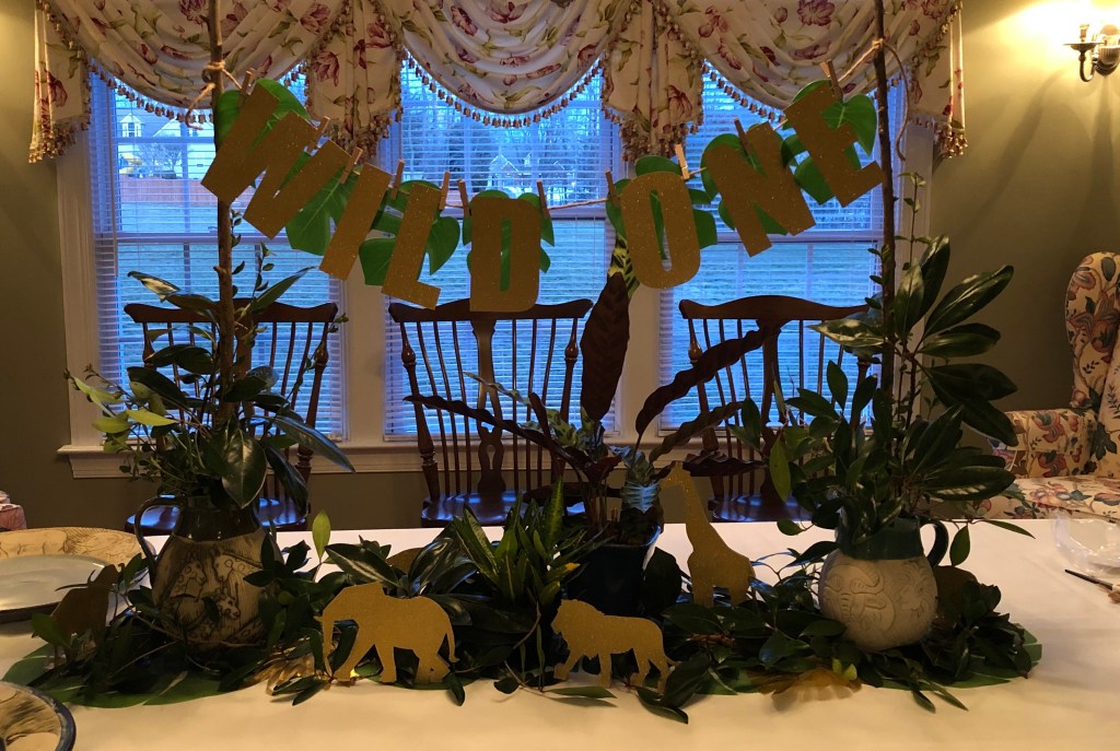 His Mom decorated his nursery in Safari Animals emphasizing gold/green, thus our event theme. Since we had all traveled to South Africa together last year, we had lots of decor and ideas!