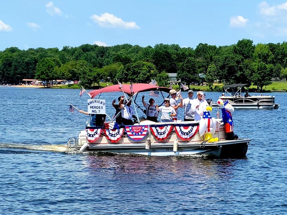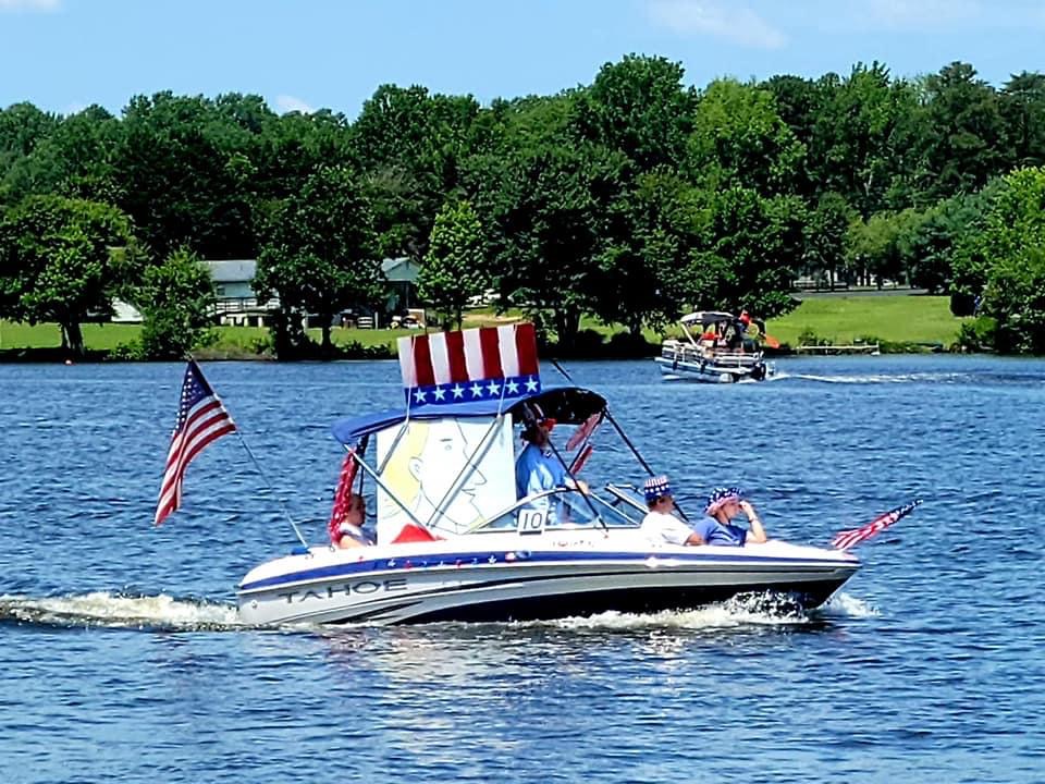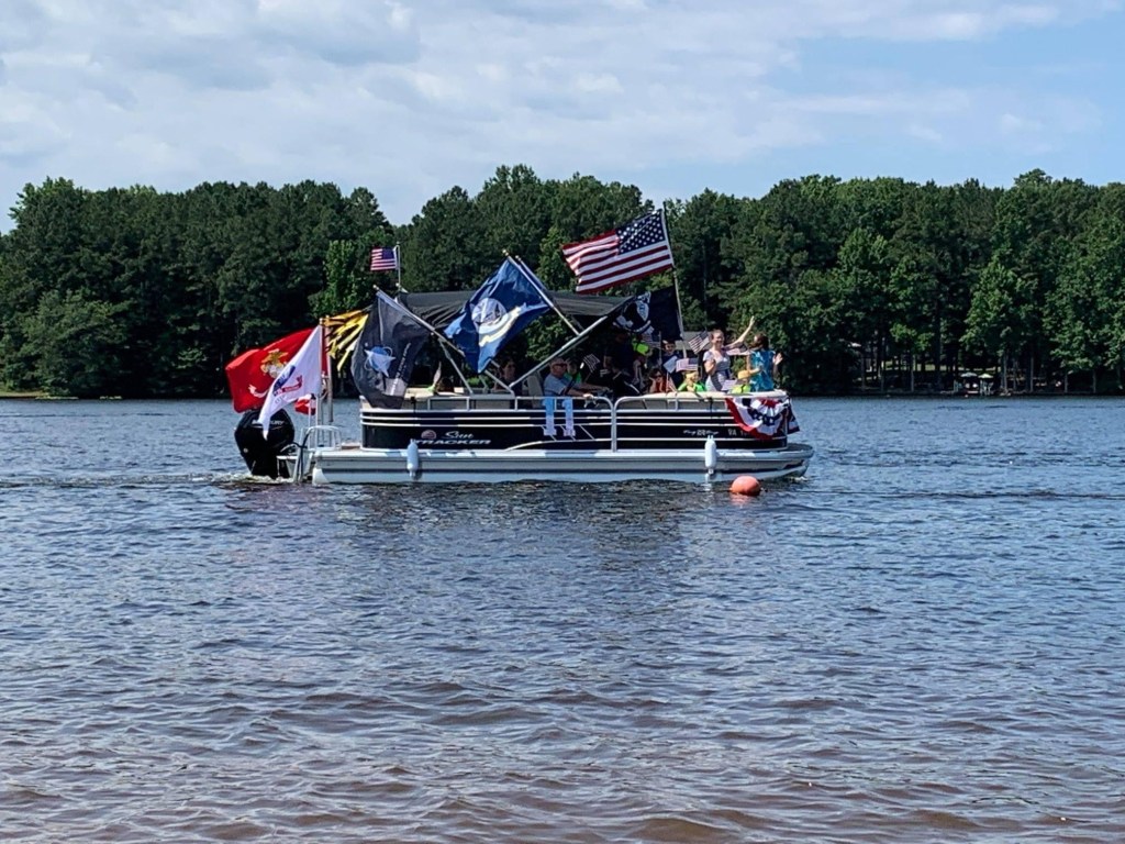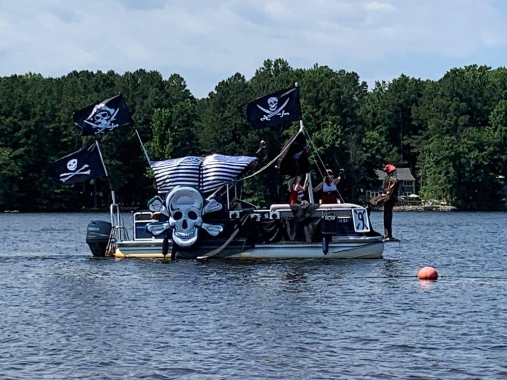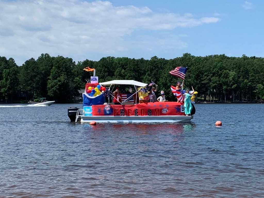 I really wasn’t sure what to expect: it was far more entertaining than I imagined. People went to a lot of work to help us celebrate. No need to leave the comfort of your deck or dock. The decorated boats paraded around the lake slowly; honked their horns as they approached to beckon viewing.