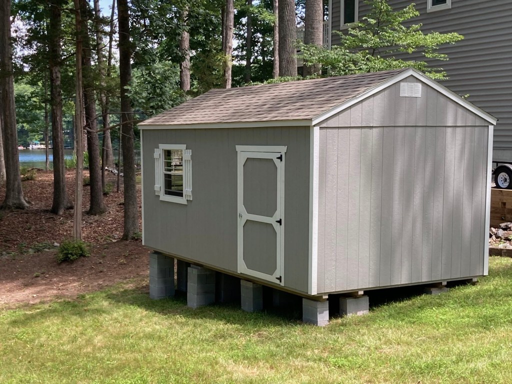 Last week, he put up the studs dividing the shed in half; while he was waiting for supplies at the other job. One end is my husband’s workshop/garage space and the other my She-Shed. We bought just a building shell. My half will be climate controlled and finished out like an indoor room in your house: wood floors, vaulted ceiling, heat/air, a deck/porch on the front facing the lake… the works!