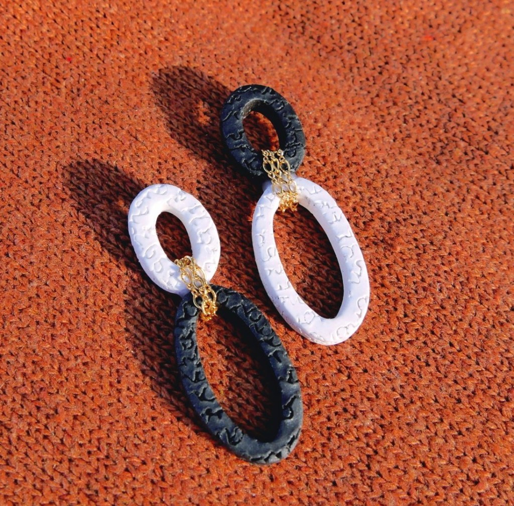 Some people are calling these the “boundary earrings” and I LOVE it! Inspired by saying no to opportunities that no longer serve you, these elegant yet classic statement earrings make setting boundaries GORGEOUS. Zoom in to see the texture on them- it was created by writing the word “no” over and over again. I love this deeply personal detail and like to think it was a reminder that I’ve got your back!”