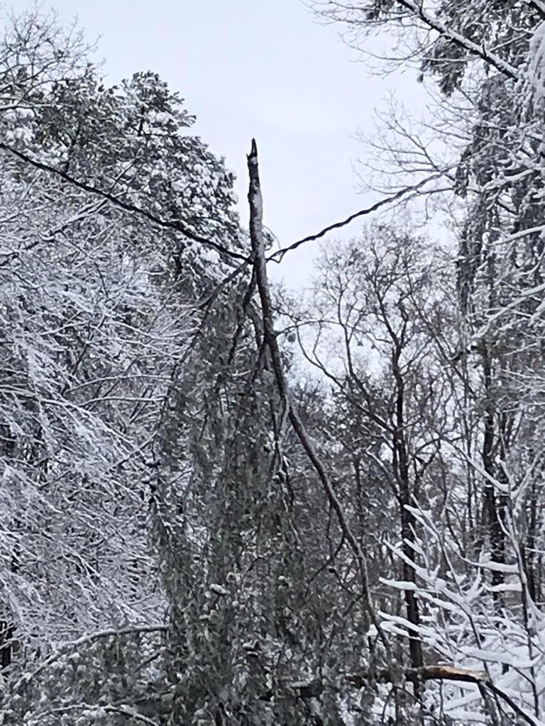 We spent the first night at home. We woke to 50 degrees in our house. It was doable. As the day went on and power was black, it got colder and we questioned another night of falling thermostats. We packed up and headed north to a friend’s house who had power and a backup generator. Our subdivision did a great job of opening the main roads, so exiting was possible. The main road to our friend’s home was clear, but we didn’t get far till traffic stopped. Dead stop …No movement! The GPS gave little hope. With night and more cold approaching, we tried a few alternative routes. Trees blocked each before we got far. We headed back home before nightfall or getting stuck.