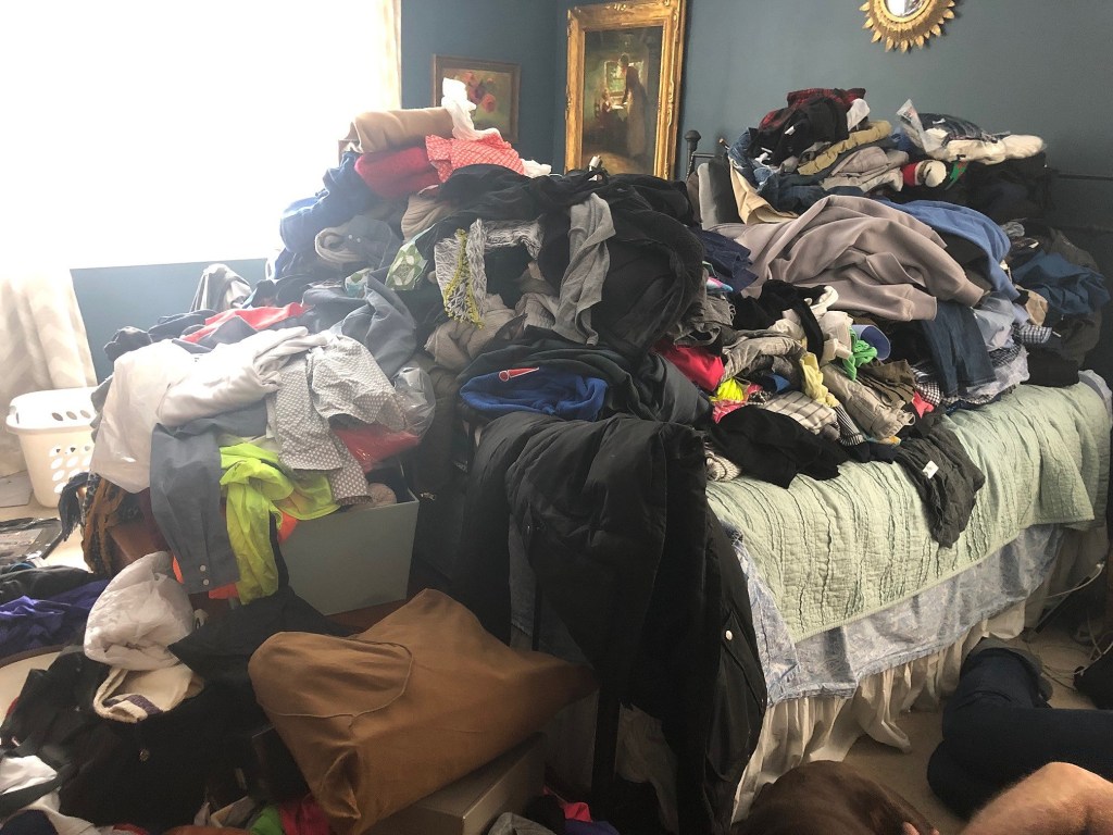 Switching out the seasons makes a huge mess of clothing and turns out being a game of Jenga.
