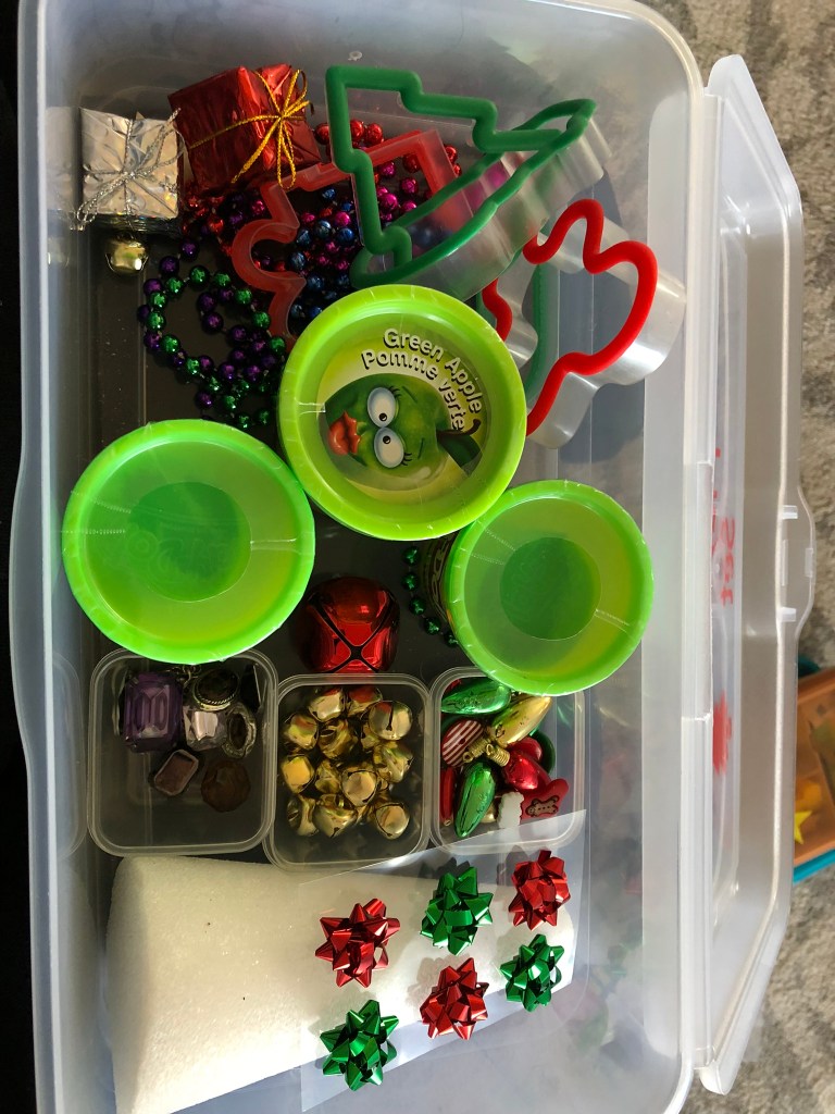 This year, I made a Nativity and another Christmas Tree Decorate Playdoh Kit for the grands to play with during the holidays. I also made them for a school gift giving program.