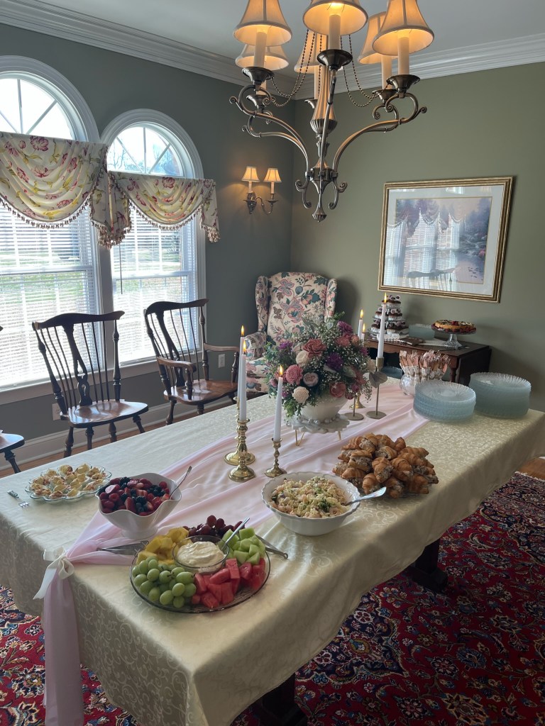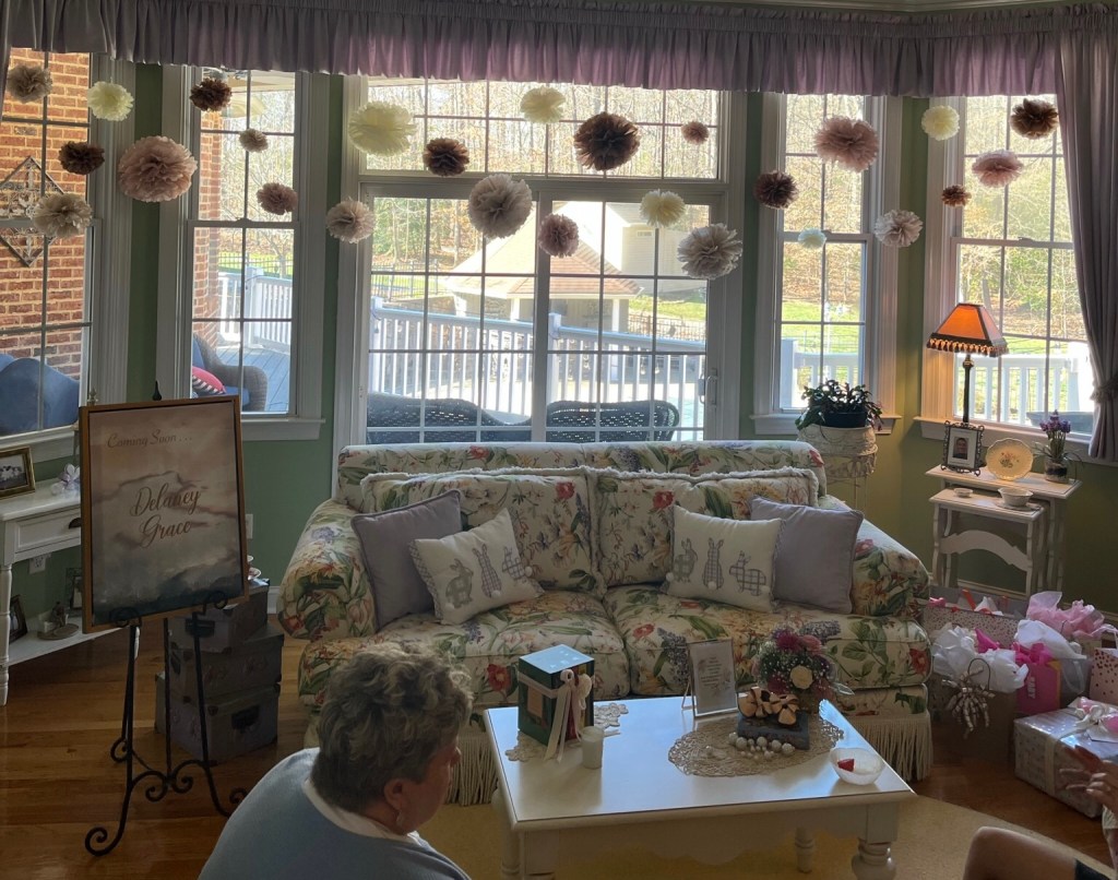 Of course, they wanted to do what Olivia wanted for the shower. We always include the wishes of the one we’re celebrating. We all have our specialties, but we meet to plan and divide responsibilities. Some of our adult children jump in with some tasks, too.