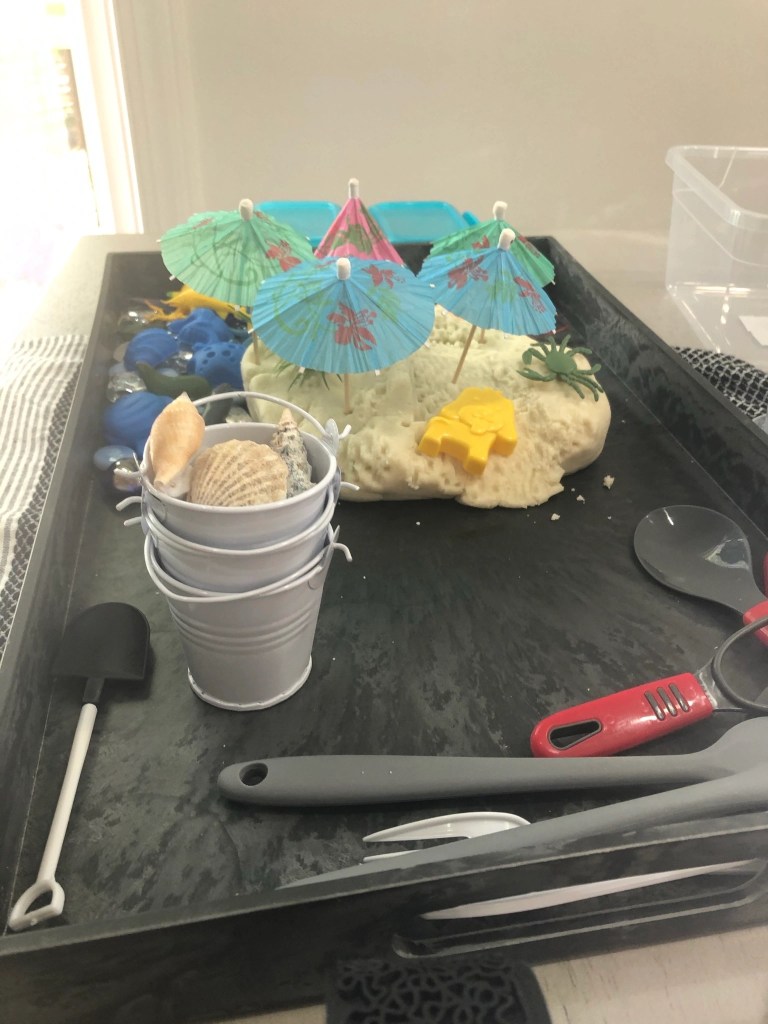 My grands love these!!! I make a new one almost every time I visit! Look them up on Pinterest. I’ve made construction, space, robots, Christmas tree, nativity, beach, penguins and, this year, a garden kit. (Plus some I can’t remember.) You can make them as unique as you are and also cater to the “little’s” likes.