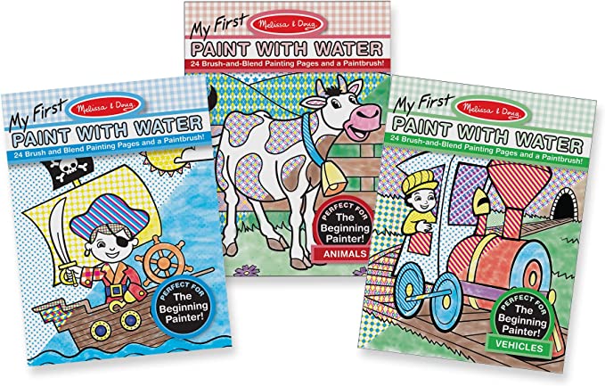 Paint with Water books have been around as long as I can remember. Kids still love them! They are easy to stow away in a suitcase and even young kids can take part. The Dollar Tree often has them, but so does Amazon! Hint: I use Q-Tips instead of paint brushes, especially for younger preschoolers! I also place a paper towel underneath the sheet.