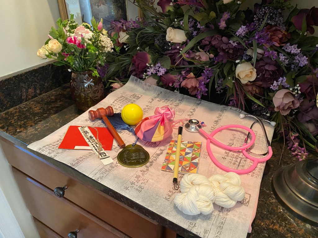 Halmony decided the coin purse would mean wealth instead of luck, which could be a similar meaning. Also, the yarn ball represented a long life to Halmony.