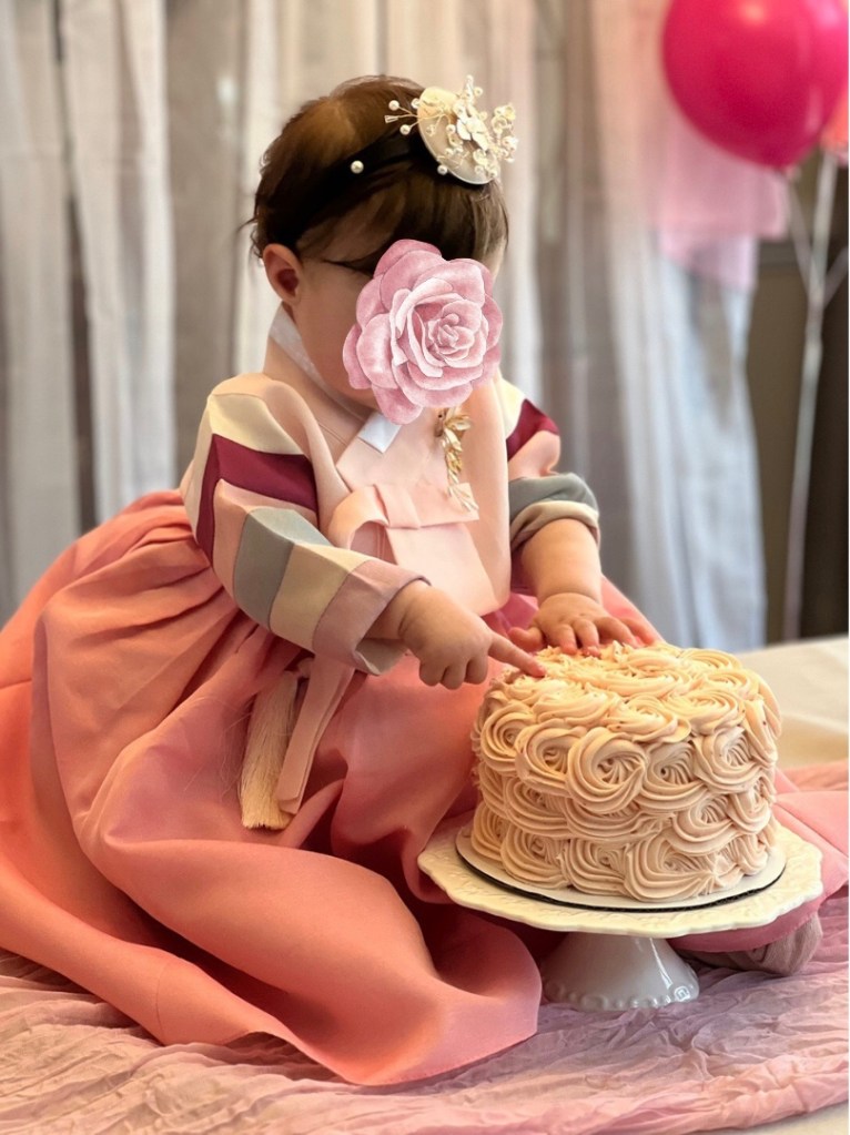 Thus, she asked Delaney’s parents if they approved her planning a Korean first birthday party. They did, of course, and we all celebrated again at “Halmony’s” house. (Korean for grandma.)