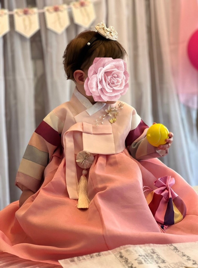 They purchased a traditional Hanbok dress. All the accessories are traditional to the outfit! Oh, my … my heart melts!