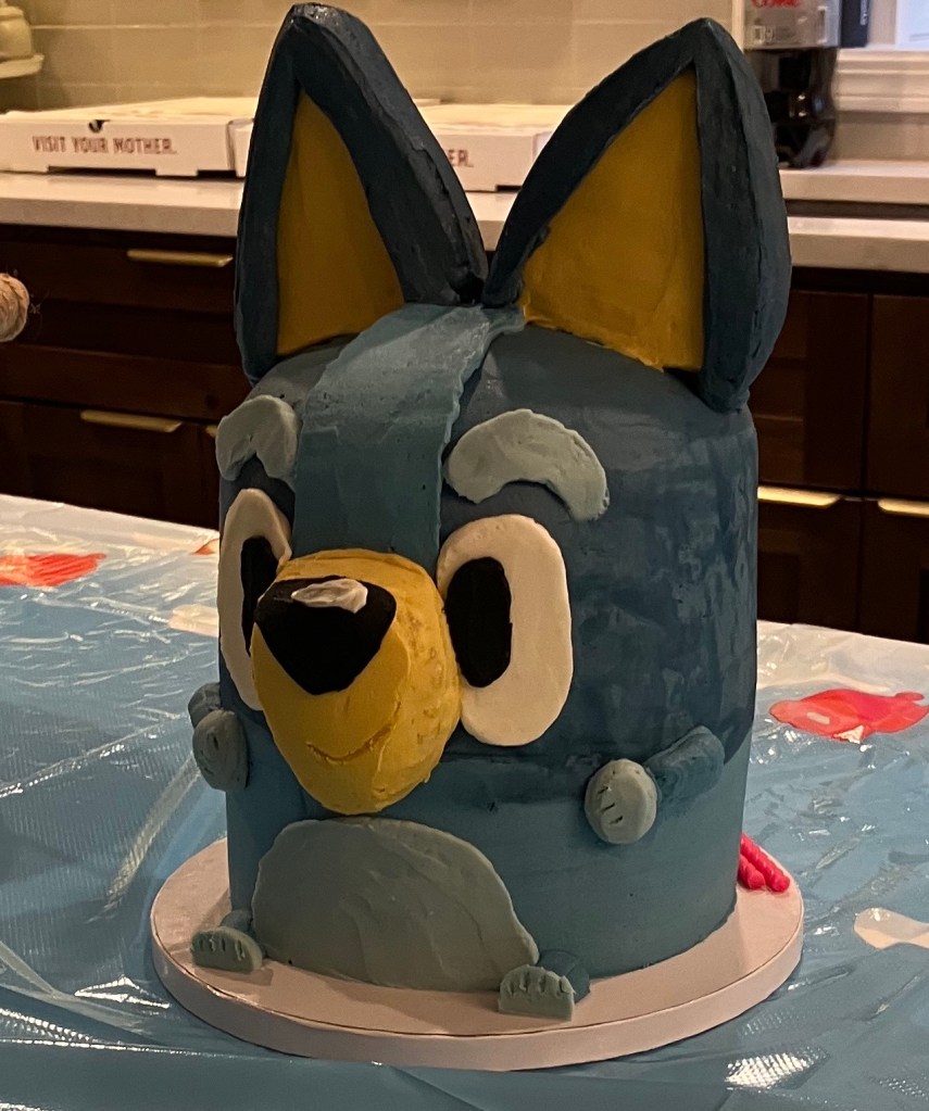 We had a 2-year-old Bluey birthday party! Our precious Indie turned two the Monday before Thanksgiving. We had a wonderful time celebrating her! She is an adorable precocious “girla”: full of humor and spunk! She knows what she wants and she can tell you all about it! My favorite is when her deep brown eyes look up and she mouths “love you so much”! Ahhhh, instant heart-melt!