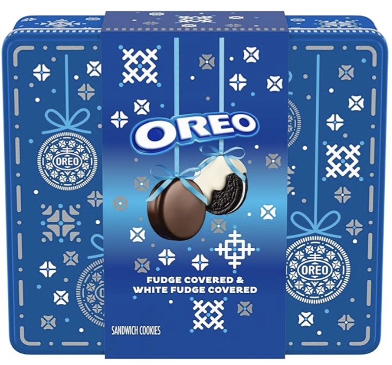 This tin of cookies … chocolate covered Oreos. They are not homemade, but no one has denied them!