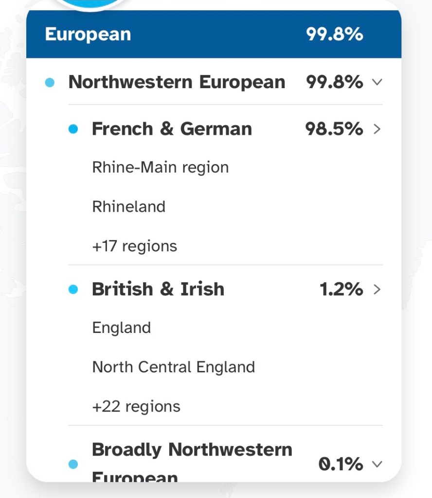 It points out the region of Germany, the Rhineland area, which borders France. That’s likely where my French heritage comes in. Maybe, a little co-mingling across the border😉