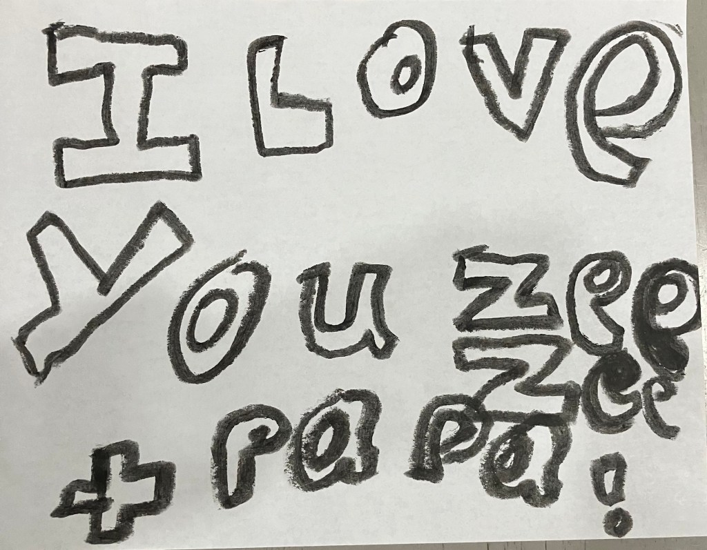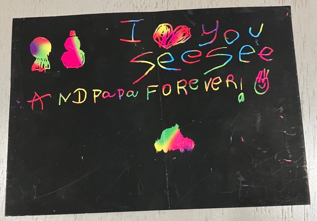 Art projects from little hands that say, “I love you Zee Zee and Papa!” Or the outstretched hand gifting you a Picasso saying, “I made this for you!”